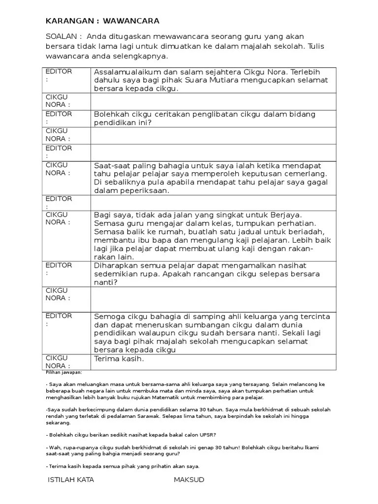 Contoh Karangan Wawancara Spm : Contoh Karangan Jenis Dialog Spm Hontoh Otosection